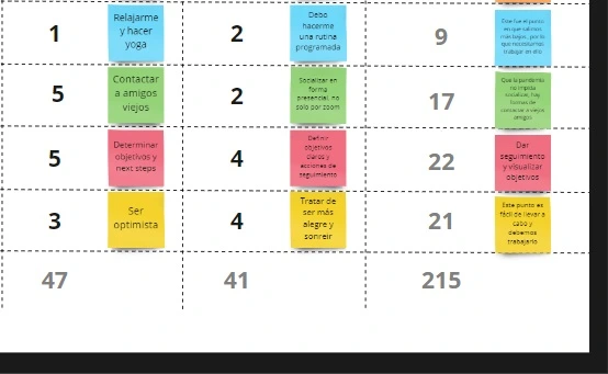 Por ejemplo: Para el paso “Dar”, un integrante colocó un “4”.