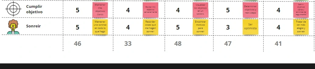 Se propone realizar la práctica con una puntuación numérica que funcione como indicador de la felicidad tanto de manera individual como para el equipo.