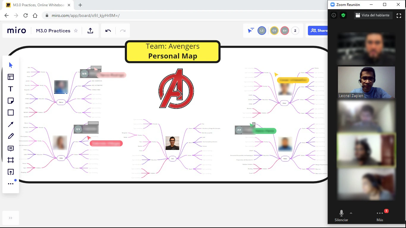 - Timebox de 5 minutos para exponer el mapa personal de cada integrante (la presentación es más poderosa si es realizada por alguien más, no por el dueño de su mapa).